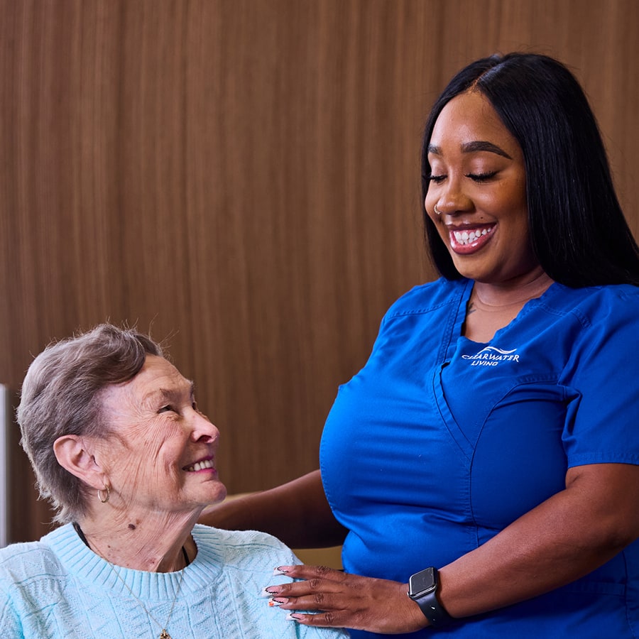 Our Clearbrook team fosters purpose and connection for residents with memory loss in a secure, uplifting, and structured neighborhood.